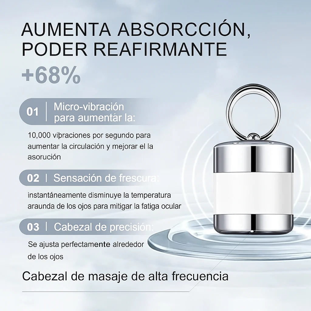 Descubre nuestro contorno de ojos con masaje eléctrico, diseñado para revitalizar tu mirada desde el primer uso. Su fórmula enriquecida con colágeno y ácido hialurónico hidrata en profundidad, mejora la elasticidad y ayuda a reducir bolsas, ojeras y líneas finas. El aplicador vibratorio potencia la absorción y ofrece una experiencia refrescante y relajante. Ideal para quienes buscan un cuidado avanzado y resultados visibles.