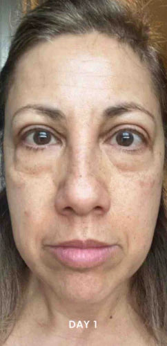 Masajea suavemente o da golpecitos con el suero sobre tu piel hasta que se absorba por completo, concentrándote en las líneas finas, debajo de los ojos y las áreas que necesitan firmeza adicional.
